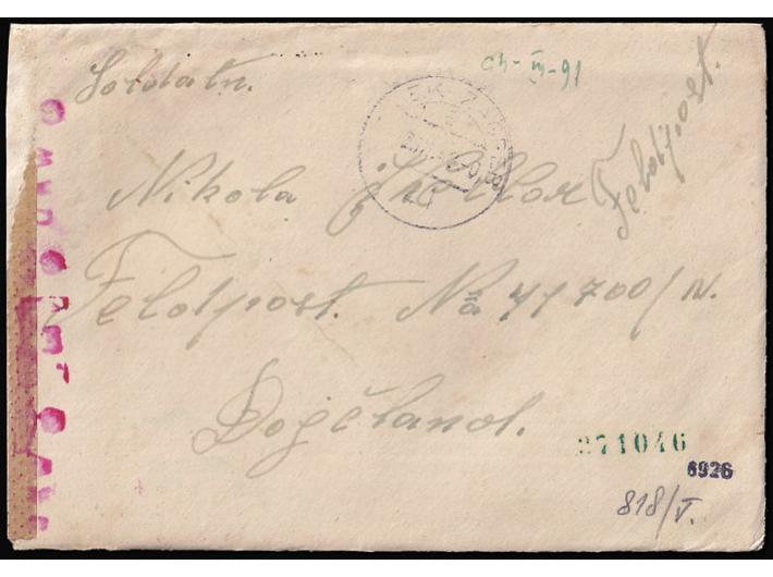 - Vojnopoštansko pismo pisano u Slatini i predano na prugu OSIJEK-ZAGREB 21 te upućeno na vojnu poštu 41 700.