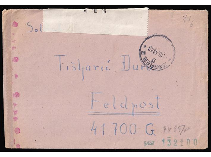 Opis: Vojnopoštansko pismo upućeno iz Petrovaradina 01.03. 1943. na broj vojne pošte 41 700 što je oznaka za obučni kamp u Stockerau u Austriji. Vrlo zanimljiv sadržaj pripadnika 7. Satnije Zrakoplovne škole. Pismo je pregledano po cenzuri Sabirne bojne pošte i OKW cenzure koja ga je i kemijski pregledala. Dobra kvaliteta.