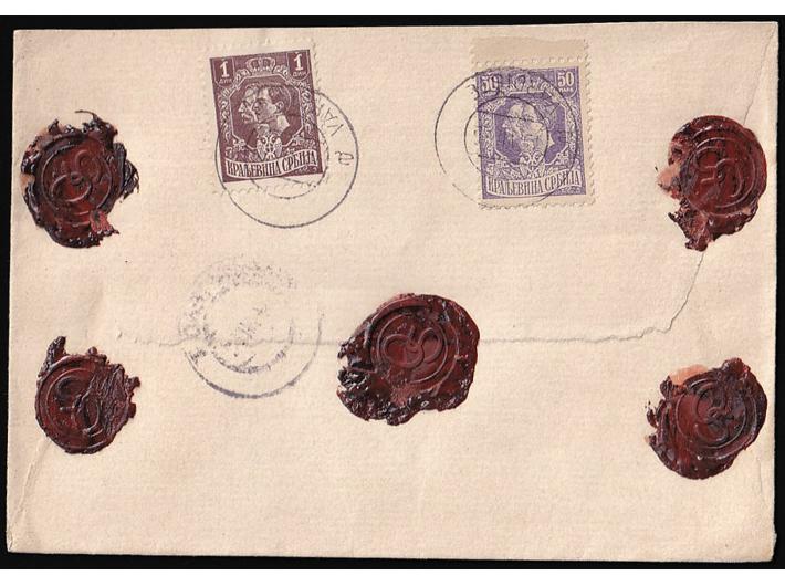 Opis: Vrijednosno pismo upućeno iz Vardišta u Sarajevo 13.08. 1920. Dolaz na poleđini. Gornji rub odrezan.