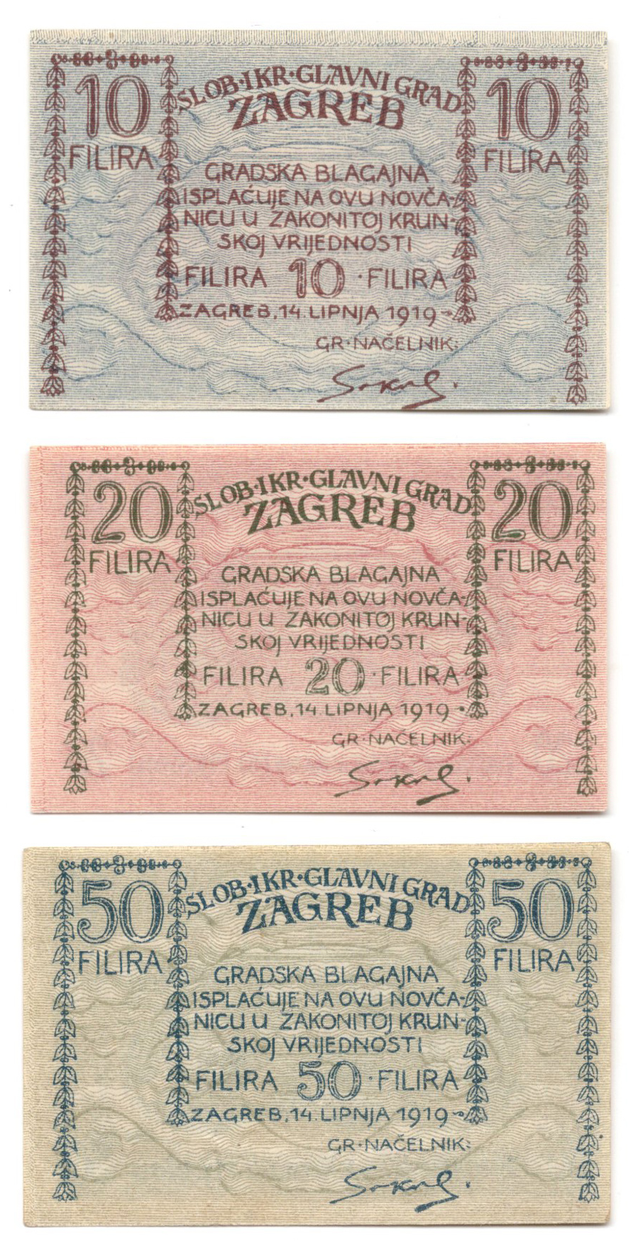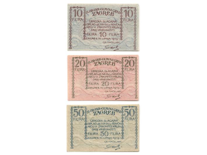 - ZAGREB, lot gradski novac 10, 20, 50 filira 1919, UNC