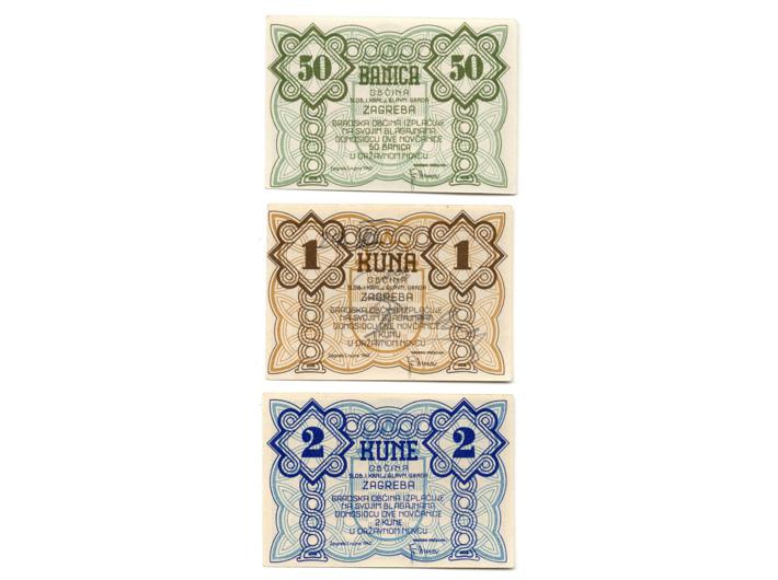 - ZAGREB, lot gradski novac 50 banica, 1, 2 kune 1942. UNC, rijetko
