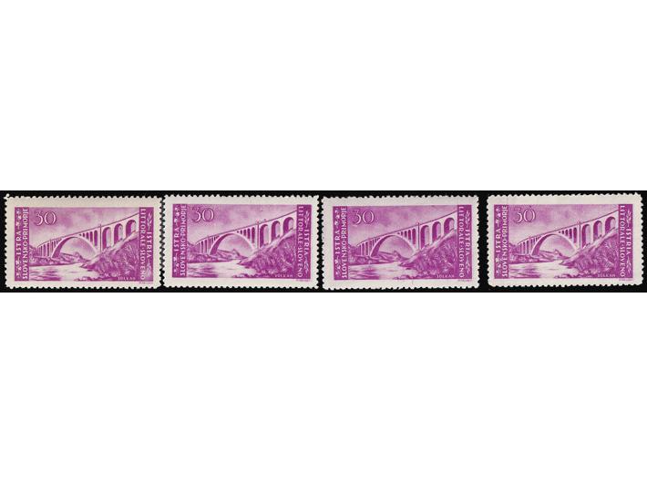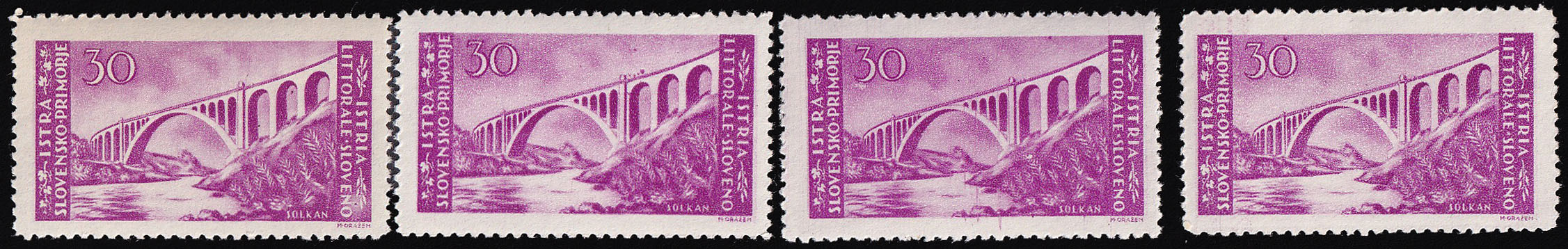 Opis: Zagrebačko izdanje, četiri marke s pogreškama tiska opisanima u Novakoviću pod B31-89.1.2, B31-18.1, B31-48.1, B31-74.2. Sve u odličnoj kvaliteti, jedna marka na falcu.