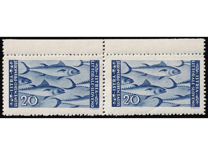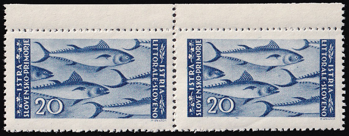 • Zagrebačko izdanje vodoravni par, pogreška tiska 4. polja u arku, desna marka slika manjeg formata