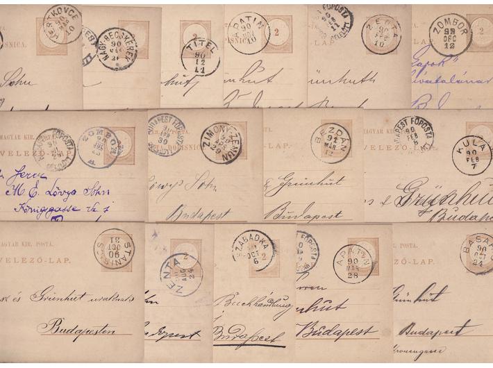 Opis: Zbirka mađarskih dopisnica (15 kom) s lijepim žigovima mjesta u Vojvodini. Sve oko 1890.