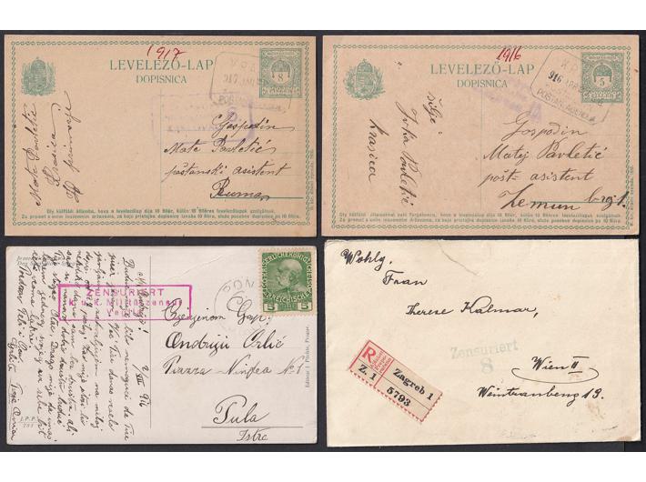 - Zbirka preko 60 pisama, dopisnica i razglednica sve s raznim cenzurnim žigovima Hrvatska 1914-1918.